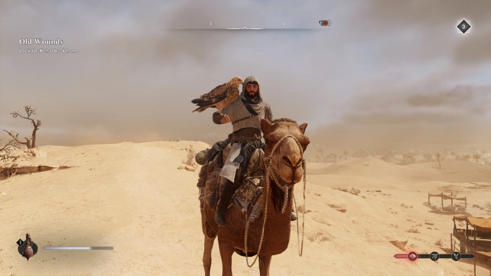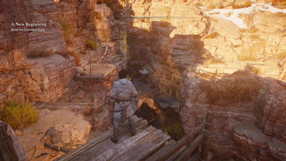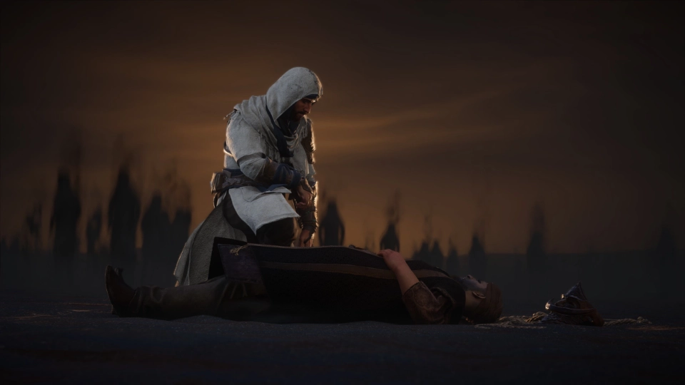 Mirage zeigt hier in sehr kurzer Zeit, dass es ihm überhaupt nicht darum geht, eine spannende Geschichte zu erzählen, sondern uns möglichst schnell in den Gameplay-Loop von früher zu bringen. Fast fragt man sich, warum wir uns überhaupt die erste Stunde geben müssen, wenn Basims Vorgeschichte so begeisterungsarm und gehetzt präsentiert wird. Andererseits gab es auch genug Leute, die von den ausschweifenden Kindheitsvorgeschichten von Ratonhnhaké (AC III) oder Arno (Unity) genervt waren – vielleicht kann man es niemandem recht machen.