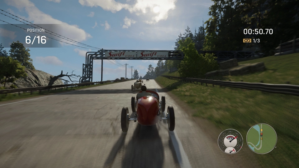 ‚Klatschen‘ ist ein gutes Stichwort, denn auch bei der Fahrphysik klatscht es keinen Beifall. Ich weiß nicht, ob sich Fahrzeuge vor 90 Jahren wie ein Klotz Butter in einer heißen Pfanne steuern ließen, aber falls ja, so wurde dieses Gefühl exzellent eingefangen. Schon kleinere Kurven lassen das Auto bei zu schnellem Fahren ausbrechen, weshalb einiges an Übung notwendig ist, damit man bei den teils fordernden Verfolgungsjagend überhaupt eine Chance hat.