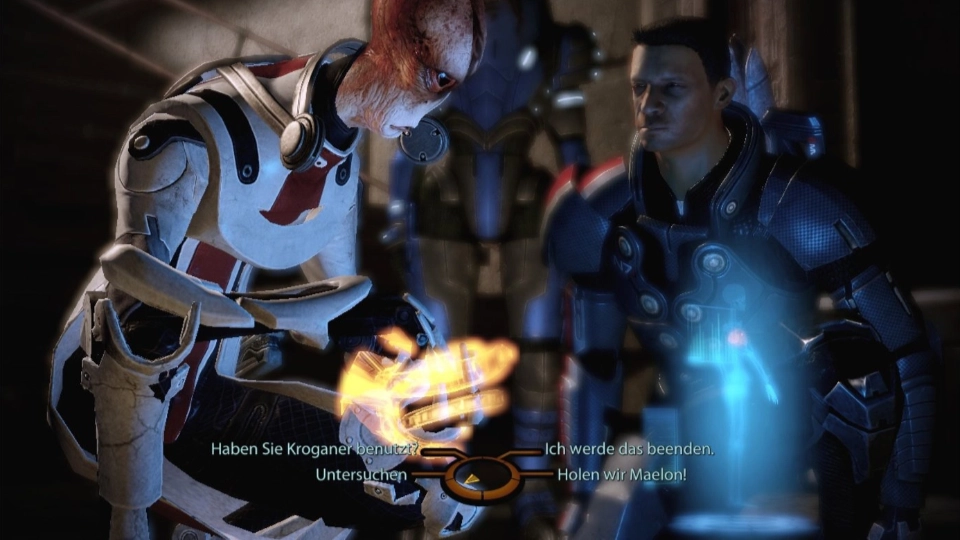 Natürlich kann man Mass Effect 2 so spielen, aber es bleibt auch nach wie vor ein Rollenspiel … mit Action… aber auch Rollenspiel. So kann Shepard auch ganz friedvoller Töne anstimmen, um Konflikte lieber mit Worten als mit Waffen zu lösen. Aber auch das Dialogsystem ist nun um einiges direkter. Musste man im ersten Teil noch Talentpunkte in Kategorien wie Schmeicheln und Einschüchtern stecken, entfallen diese Skills nun komplett. An ihre Stelle treten Quicktime-Optionen, durch die wir in bestimmten Gesprächen direkt intervenieren.
