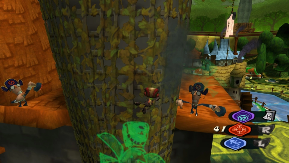 Hier zeigt Psychonauts, dass seine Stärken leider nicht im Gameplay liegen, denn eigentlich braucht man die Hälfte der an sich coolen Fähigkeiten nicht. So kann Raz beispielsweise durch die Feuer-Fähigkeit Gegenstände in Brand stecken, muss hiefür allerdings kurz stehenbleiben und sich konzentrieren. Bei unbeweglichen Gegenständen ist das kein Problem, zünden wir dagegen einen Feind an, besteht die Chance, dass der in uns hineinrennt und uns ebenfalls in Brand steckt. Der Schild macht uns hingegen kurzzeitig unverwundbar, und mittels Unsichtbarkeit können wir Gegner einfach direkt umgehen.