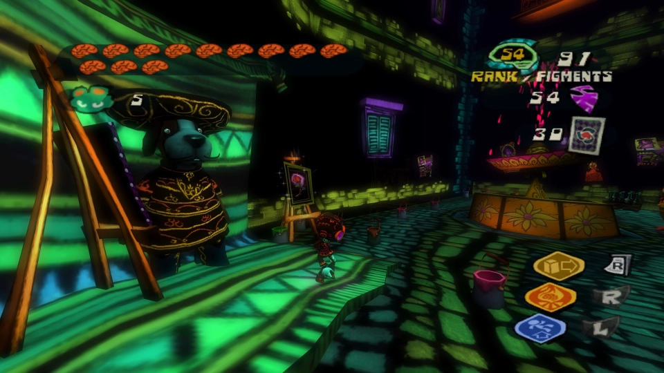 Nun habe ich davon gesprochen, dass es nicht das Gameplay ist, das Psychonauts herausstechen lässt. Es ist auch nicht zwangsläufig der Humor, der zwar meinen Geschmack trifft, aber manchmal dann doch etwas zu klamaukig ist (beispielsweise heißt die Gehilfin des Bösewichts Dr. Loboto „Sheegor“… also wie Igor, nur weiblich – fand ich witzig). Aber für mich definiert tatsächlich die Reise in den Geist eines Menschen den Kern des Spiels. Die Szenerien, die an eine Mischung aus Alice im Wunderland und Inception erinnern und in denen Themenwelten kreativ und detailverliebt umgesetzt werden. So kann ich mich recht lebhaft an jedes Level erinnern, weil jedes davon der Psyche der unterschiedlichen Charaktere Gestalt gibt.
