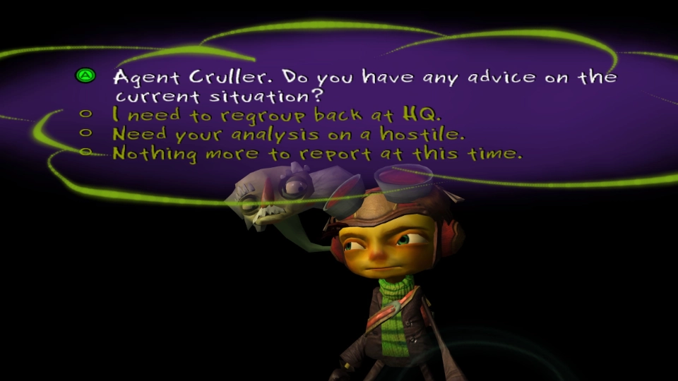 Es ist eher dem Alter des Spiels und der Unerfahrenheit der Entwickler bei ihrem Erstlingswerk zuzuschreiben, dass viel spielerischer Anspruch durch simples Ausnutzen der Mechaniken verloren geht. Kämpfe bleiben seicht und größtenteils belanglos, nur die zahlreichen Bosskämpfe erfordern hin und wieder etwas Gehirnleistung. Da das Aufleveln passiv durch das Erledigen von Feinden und dem Einsammeln von PSI-Karten geschieht, die Fähigkeiten aber an sich unnütz sind, fehlt auch die Motivation zum Kloppen und Erkunden – zumal die Feinde beim erneuten Durchlaufen der Level eh wieder respawnen. Trotz Pazifismus kann man aber auch so Raz des Öfteren beim virtuellen Ableben beobachten, vor allem durch die zahllosen Abgründe, in die man gerne einmal aus Versehen stolpert und springt – und nein, hier lasse ich auch das Altersargument nicht gelten, dafür habe ich mich viel zu häufig geärgert.