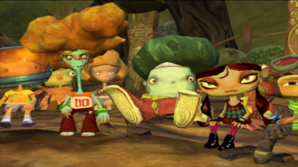 Zum Beispiel das Cheerleaderpaar Clem & Crystal, die mit ihrer überdreht positiven Art bei jeder Begegnung Protagonist Raz anfeuern, nur um dann im Anschluss Andeutungen zu machen, dass beide einen Suizidpakt am Laufen haben. Dieses Traurige-Clown-Konzept dürfte Kindern wohl entgehen, ist in seiner Umsetzung als makabrer Running-Gag für die Älteren aber witzig umgesetzt. Generell zieht Psychonauts den größten Teil seiner Unterhaltung sowohl aus den Dialogen und der klamaukigen Selbstironie, die das Spiel durchzieht, als auch den düsteren, psychologischen Abgründen seiner Charaktere, die wir in teils abgefahrenen Leveln erforschen.