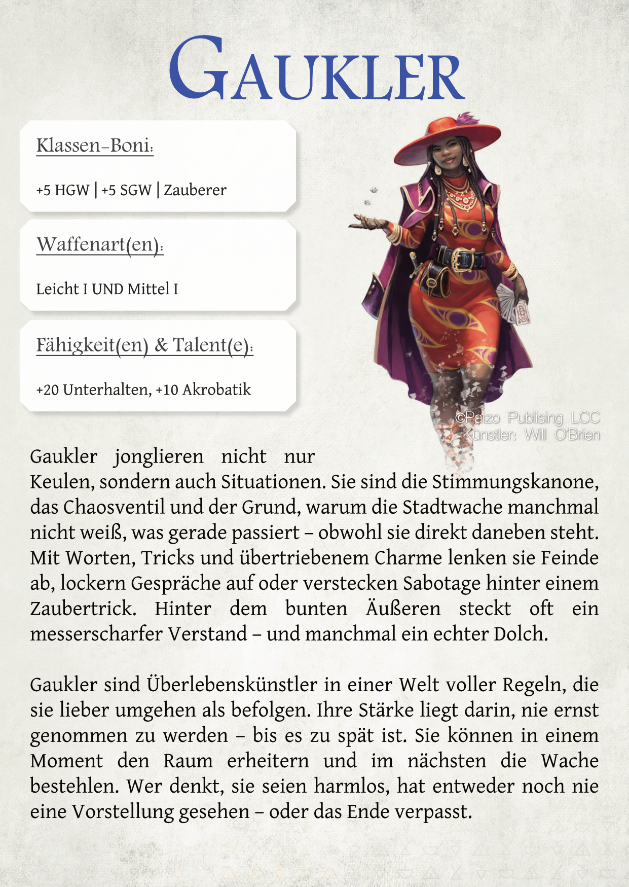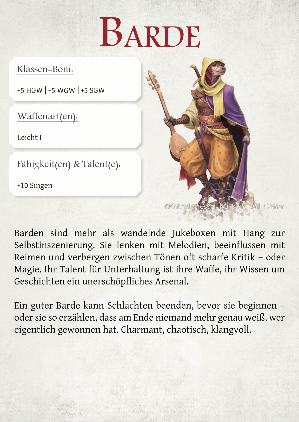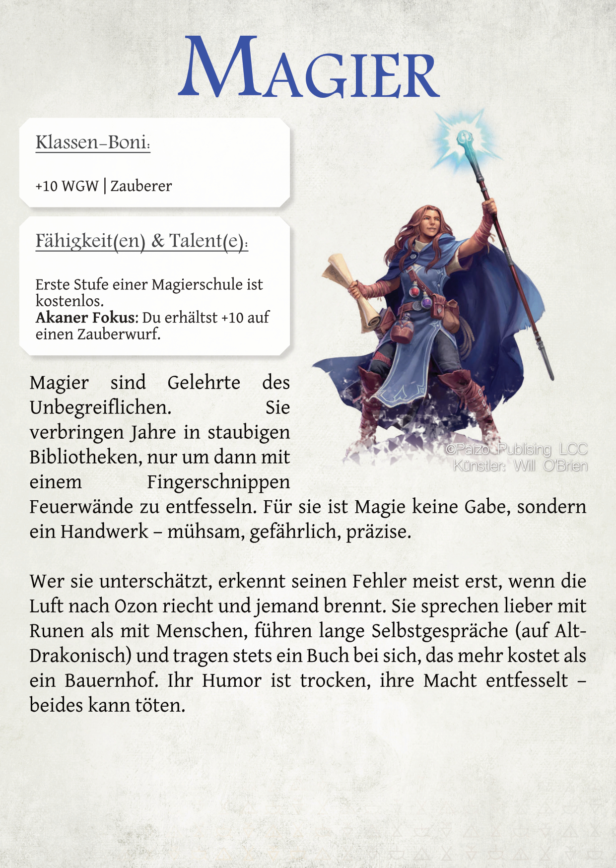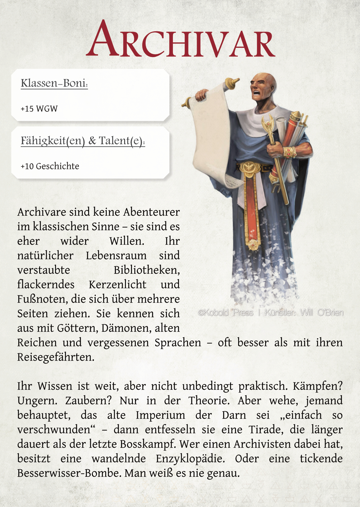 Dabei muss ich transparent sagen, dass nicht alles auf meinem Mist gewachsen ist. Die Grundidee für das Punktesystem ist dem kostenlosen How to Be a Hero-Regelwerk entliehen und es finden sich Aspekte aus anderen Systemen wie DSA und DnD wieder. Außerdem hat mir die KI in Form von Chat-GPT geholfen. Gerade das Testen und Balancen ist für jemanden mathematisch Mittelmäßigen wie mich eine wirkliche Erleichterung gewesen. Trotzdem würde ich so weit gehen und es als ‚mein‘ Werk ausgeben… es steht sogar mein Name auf dem Cover.