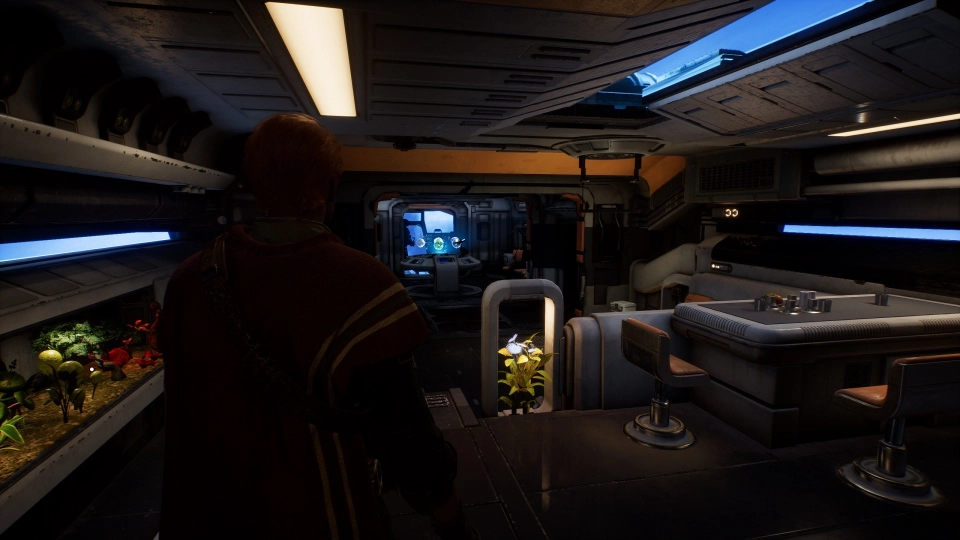 Und dieses Gefühl, das alles schon mal erlebt zu haben, zieht sich leider weiter durchs Spiel. Es folgt eine leicht spoilerige Personenanalyse. Die Leute, die uns gerettet haben, sind Mentorin Cere Junda, Ex-Jedi-Ritterin mit problembeladener Vergangenheit und grimmig liebenswerter Pilot Greez Dritus, der ganz toll fliegen kann. Cal freundet sich in nur kürzester Zeit mit den beiden an und reist zum Planeten Bogano, um nach einer Möglichkeit zu suchen, den Jedi-Orden wieder auferstehen zu lassen. Vor Ort trifft Cal noch den Letzten im Bunde, den zum Knuddeln süßen Droiden BD-1, der Cal auf seinen Außenmissionen begleitet. Dabei möchte ich es storymäßig fürs Erste belassen.